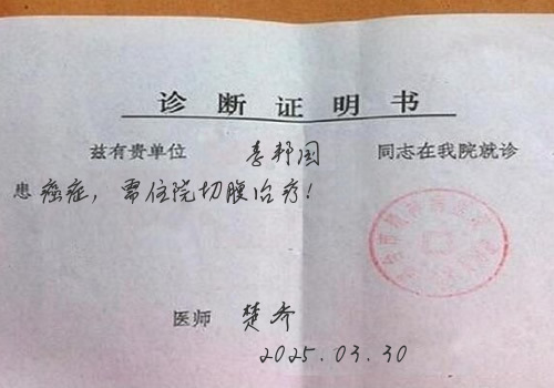 李邦国_楚乔_癌症,需住院切腹治疗!
